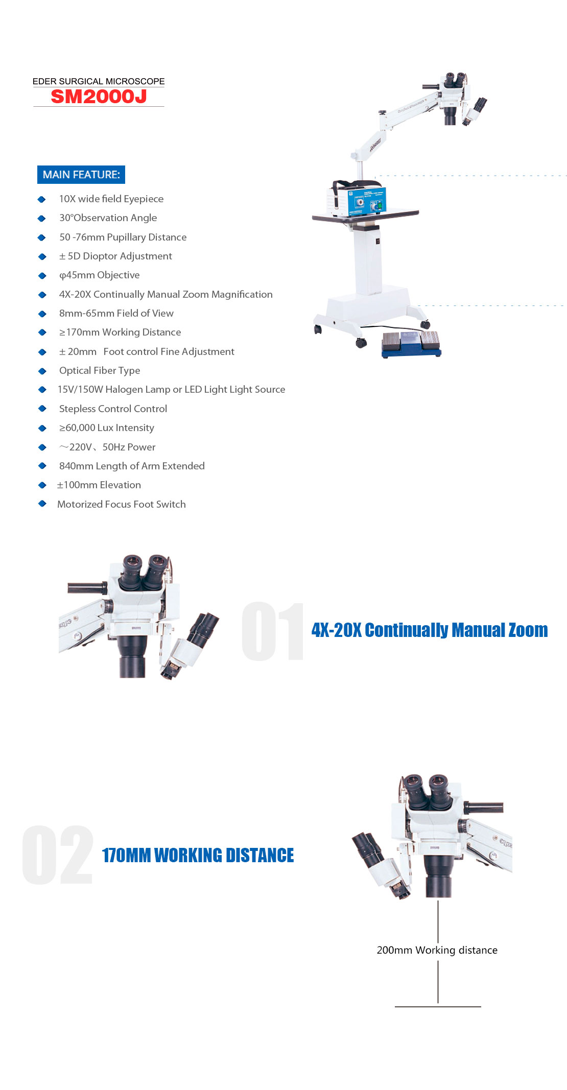 SM-2000L LED Olympus Surgical Microscope for Hospitals, Motorizes Zoom Optics